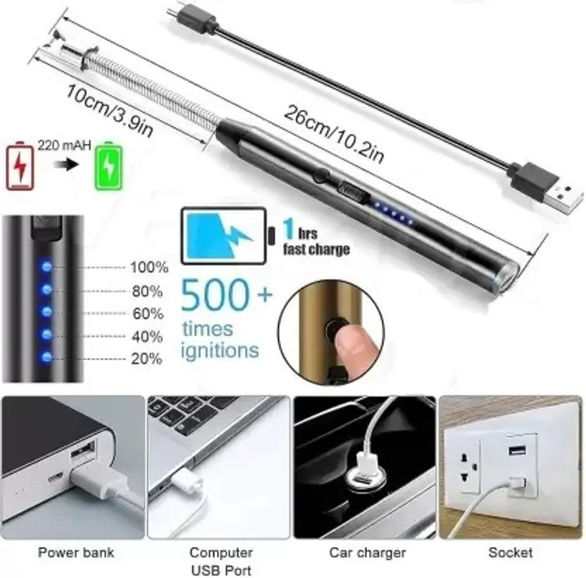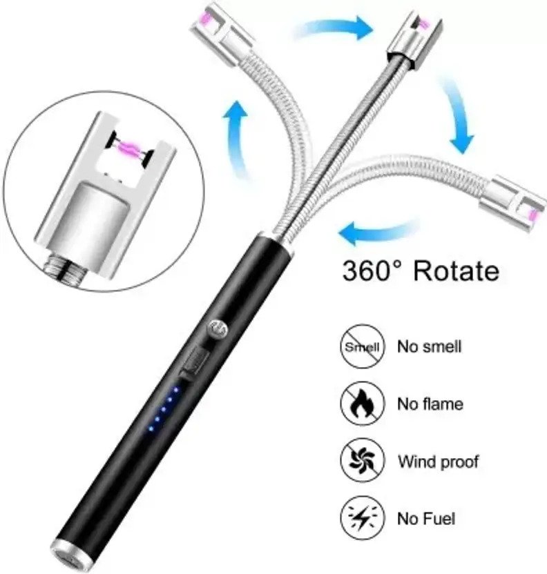 Make lighting gas stoves, candles, and grills effortless with the Flexible 360° Kitchen Lighter. Designed with convenience and safety in mind, this rechargeable electric lighter features a flexible neck that bends in any direction, allowing you to reach difficult angles with ease.
